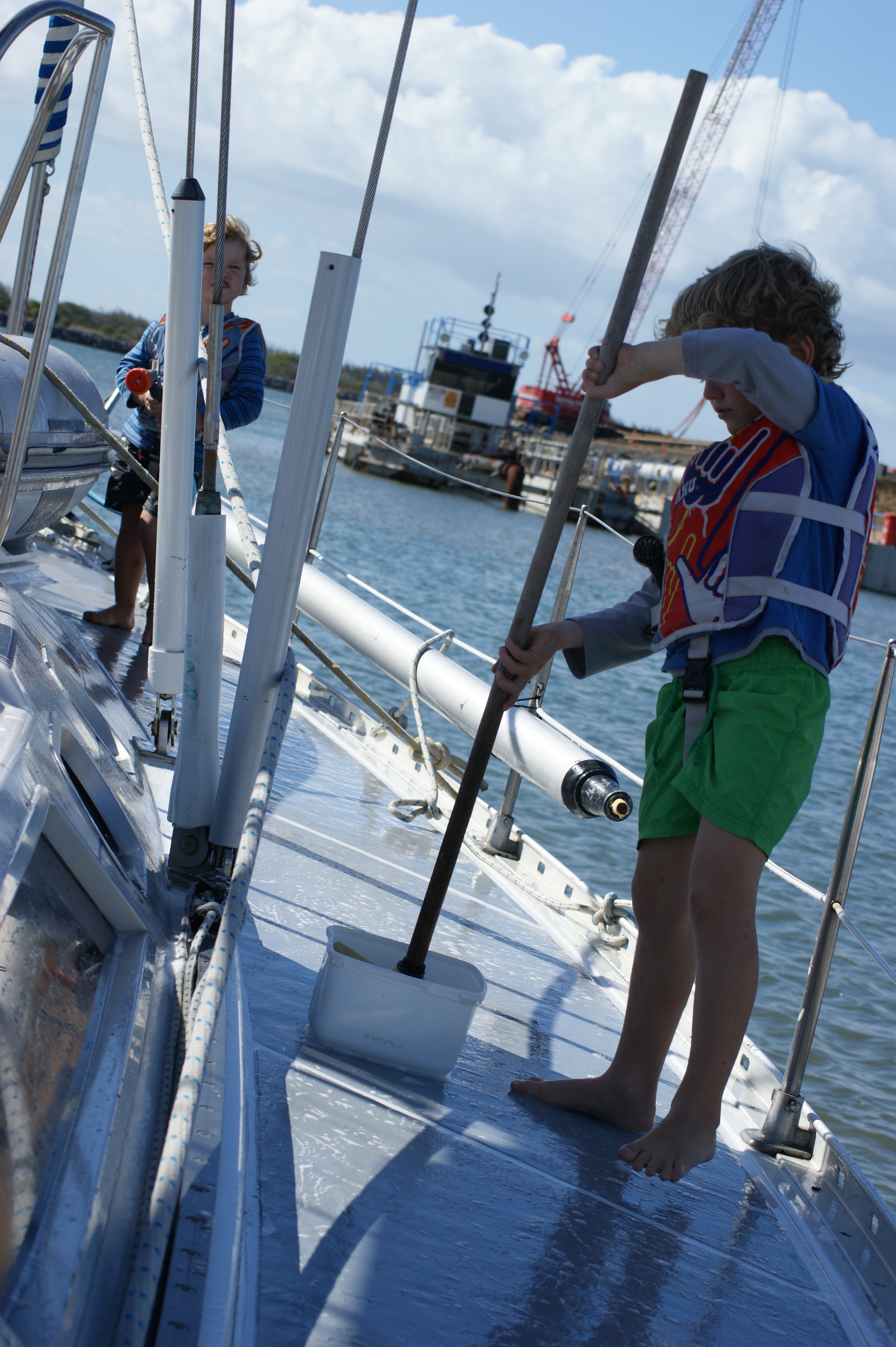 As there wasn’t much to do, we made the most of waiting for a weather window by provisioning and cleaning the boat. We have introduced ‘pocket money’ to the grand total of $5 a week if the boys help clean, put their toys away and help set and clear the table. This seems to be working well as every Friday we are ushered to Kmart the minute it opens and spend the next 2 hours debating what they can actually buy for $5. Ollie normally selects a Match Box car and Harry some form of plastic animal or Ninja Turtle figurine.