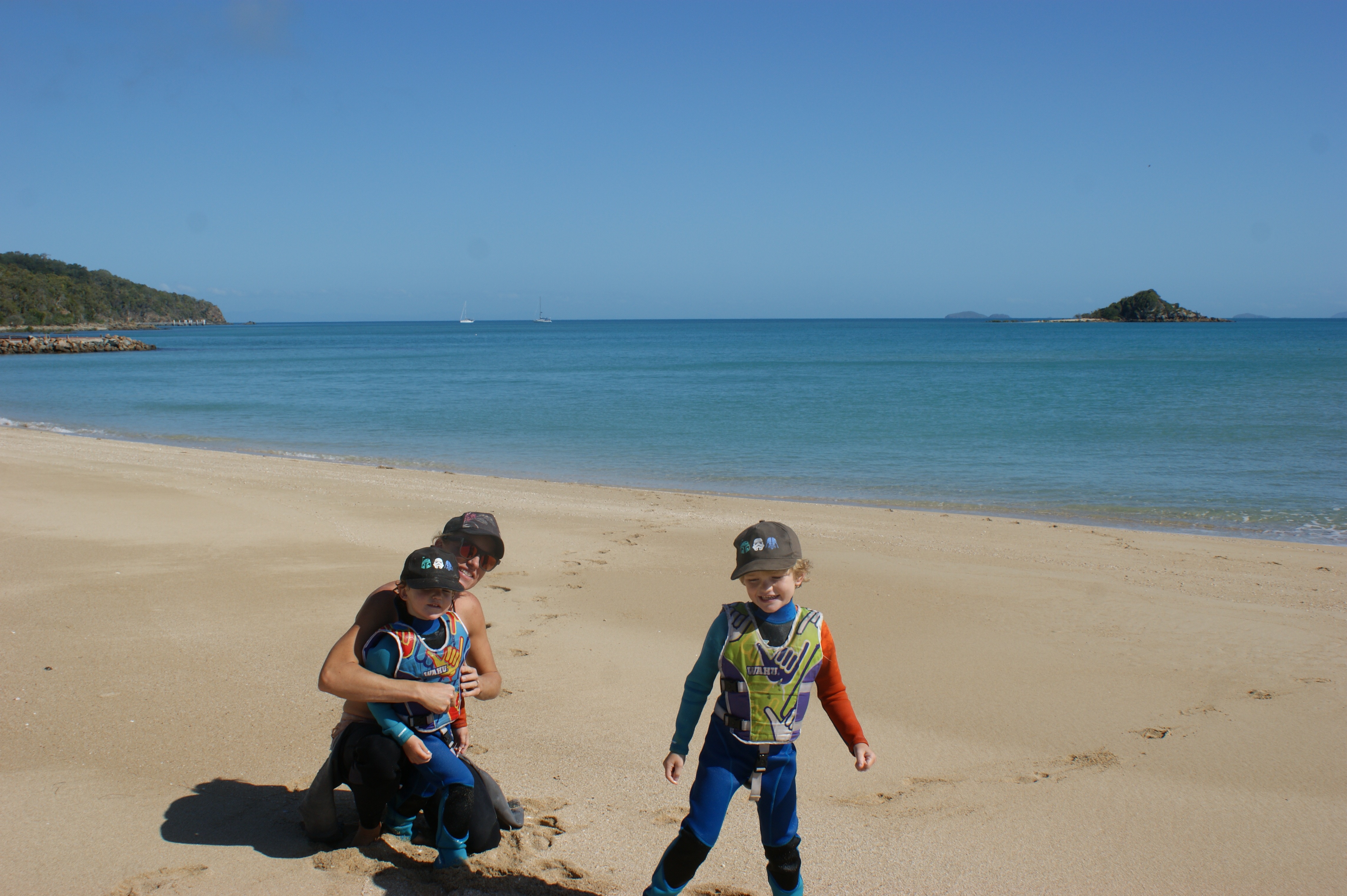 We left Mackay and headed to Brampton Island which is about a 3 hour sail. On route we got our most solid lean up of the trip as Annie reached into 20 knots of wind and we were flying to our destination. That was until I hear the little voice of Harry. ‘Um Mummy there is water coming in your bedroom’…… oh God the WORST words you ever want to hear on a boat. I launch myself downstairs to see that Mummy has left one of the hatches open. Of course it is the windward hatch so water is pouring through straight onto my side of our bed. I swiftly close it and think ‘Well that would be karma to me for not fulfilling my hatch role.’ Generator on and 2 hours later with the hairdryer I finally dry it enough to think I don’t have night incontinence issues.